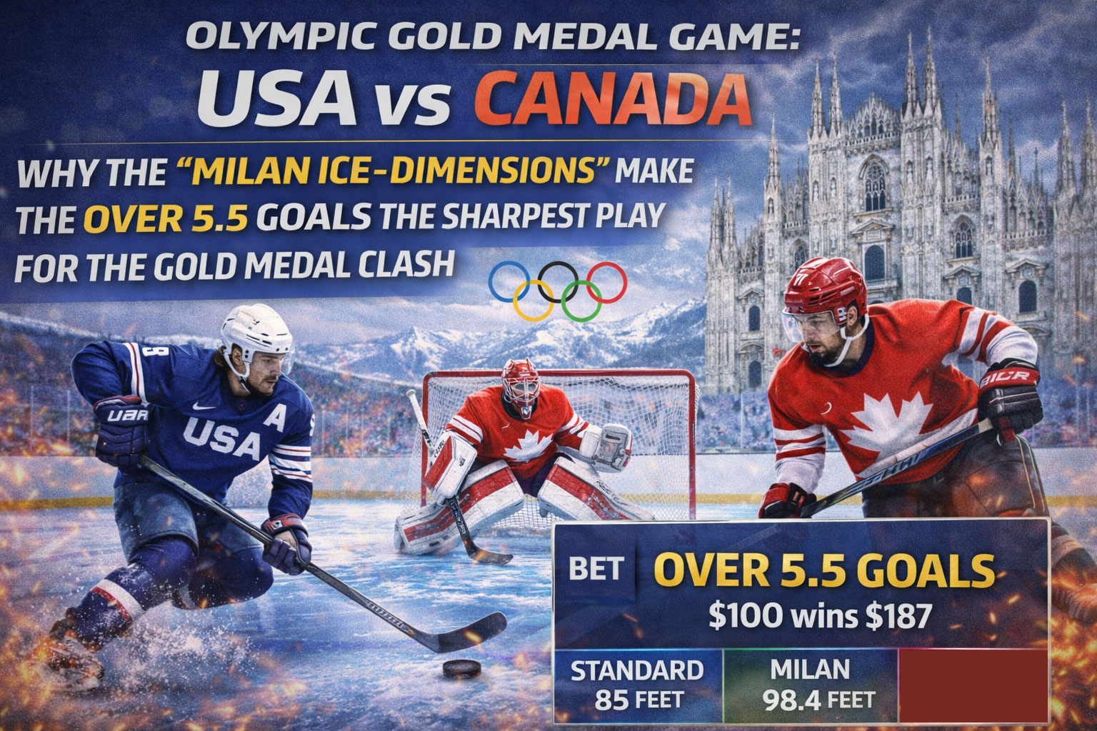 Alright, degenerates, let me hit you with some alpha that the public is completely sleeping on for tonight’s USA-Canada gold medal game. While everyone’s busy arguing about Crosby’s legacy or whether Team USA can finally exorcise their demons, the real money is staring us right in the face: we’re playing on Milan ice dimensions, and that changes everything. This isn’t your standard NHL rink where defense wins championships—this is a track meet disguised as a hockey game, and I’m about to show you why the Over 5.5 is the sharpest play you’ll make all tournament. Buckle up, because we’re about to turn a geography lesson into a payday.