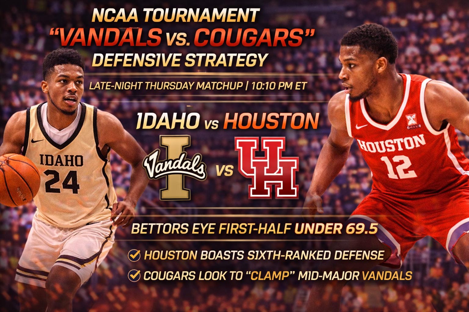 In my years of breaking down late-night college hoops, I’ve learned one universal truth: sharp money loves exploiting tempo mismatches when the public’s asleep. Thursday’s Idaho vs Houston first-half showdown (10:10 PM ET) is serving up exactly that scenario. The 1H under 69.5 isn’t just a number—it’s a mathematical inevitability when you pit a mid-major offense against the sixth-ranked defense in the nation.