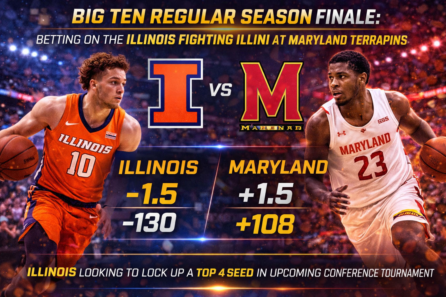 The Big Ten regular season finale is here, and Illinois is traveling to College Park with everything on the line. We’re talking top-four seed implications for the conference tournament, which means bye-week value and easier paths to the championship. In my analysis of the line movement this week, I’m seeing some fascinating divergence between public perception and sharp money flow. The Fighting Illini opened as 3.5-point favorites and that number has held despite heavy public action on Maryland—that’s your first clue something’s cooking.