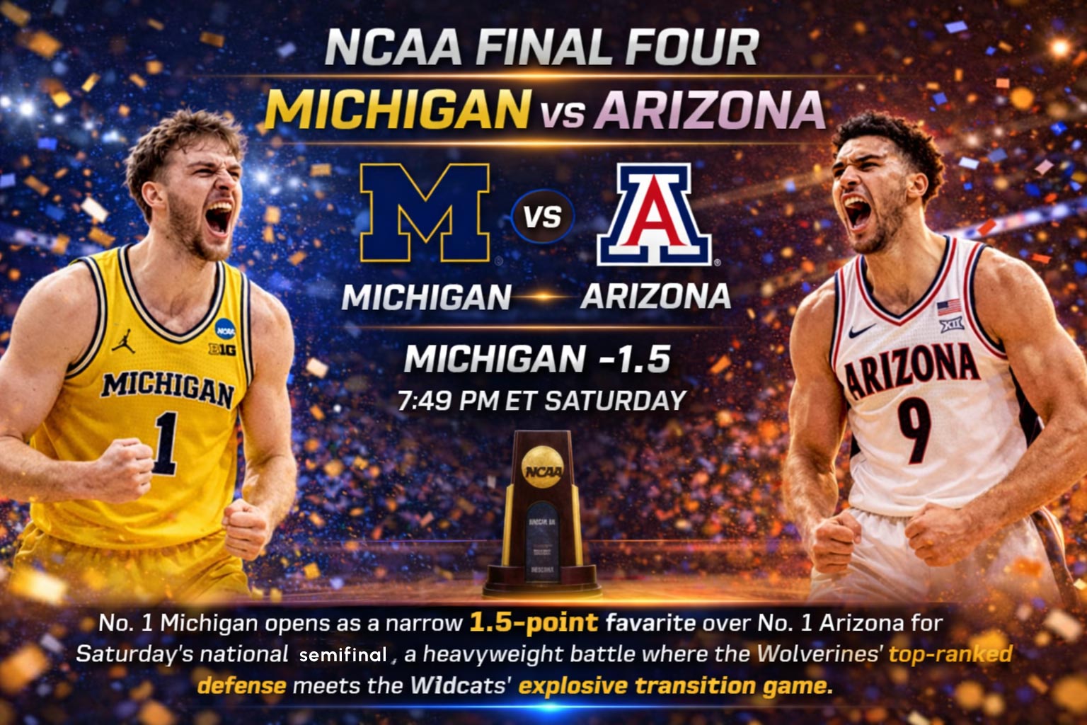 The NCAA Final Four is where chalk meets chaos, and Saturday’s Michigan-Arizona showdown is serving up one of the tightest spreads we’ve seen in recent tournament history. Michigan opens as a 1.5-point favorite over Arizona, and honestly, that line screams opportunity for anyone who knows where to look. In my analysis of the line movement since opening, the sharp money has been quietly hammering one side while the public splits like a freshman’s bankroll after their first bad beat. This isn’t your typical Final Four matchup where offense steals the headlines—this is a defensive masterclass meeting a transition buzzsaw, and the market hasn’t fully priced in what that means.