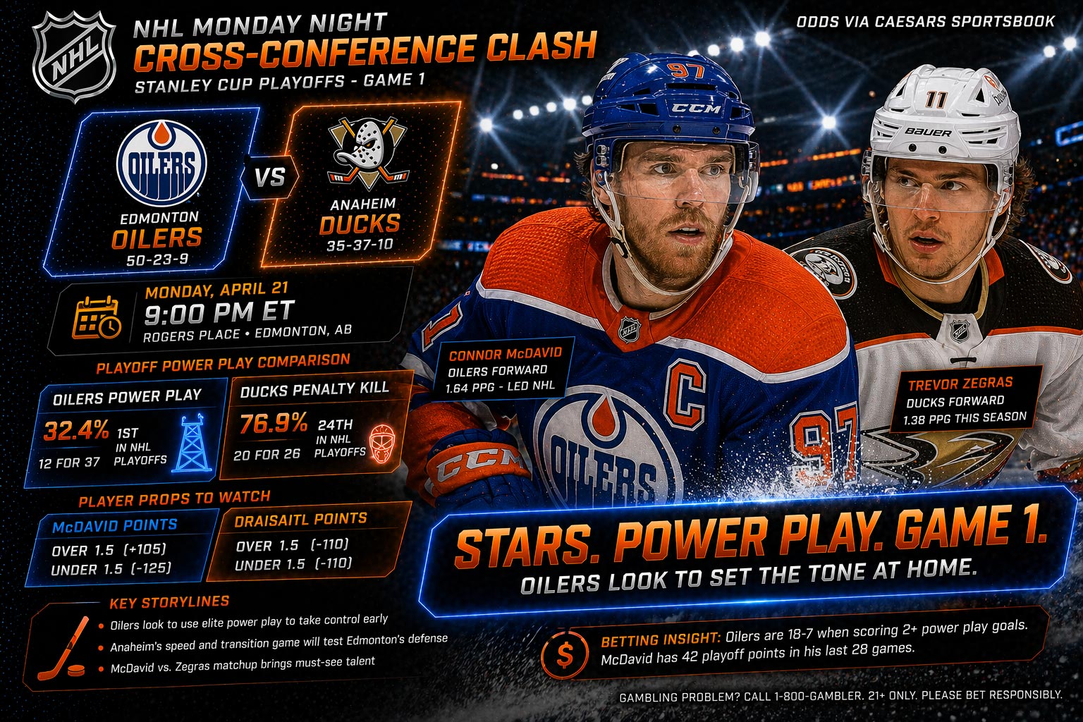 The Oilers hosting the Ducks on a Monday night is basically a layup disguised as a hockey game, but here’s the thing – everyone knows it. When the public consensus gets this loud, the real edge isn’t in picking the winner (spoiler: it’s Edmonton), it’s in dissecting the player props where the books are practically begging you to take their money. The Oilers’ power play is running at nuclear efficiency this season, and with Anaheim’s penalty kill looking like a JV squad that wandered onto NHL ice, we’ve got a perfect storm for some targeted prop betting. Let’s talk about where the sharp money is actually going, because blindly hammering McDavid points without understanding the market dynamics is amateur hour.