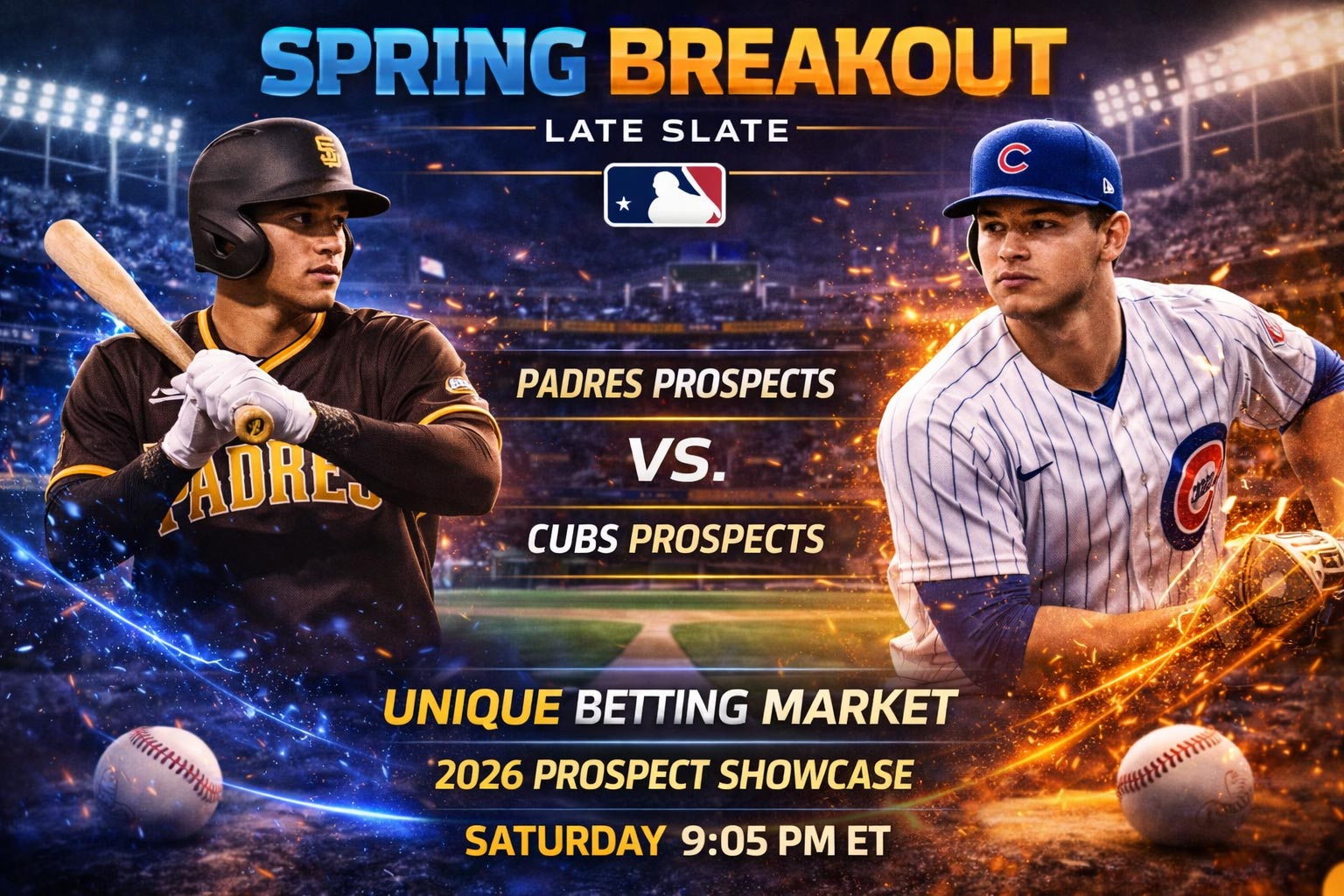 The 2026 Spring Breakout Late Slate is serving up something different tonight. San Diego Padres prospects face Chicago Cubs prospects at 9:05 PM ET Saturday. This isn’t your grandpa’s spring training—this is a betting market with actual exploitable edges.