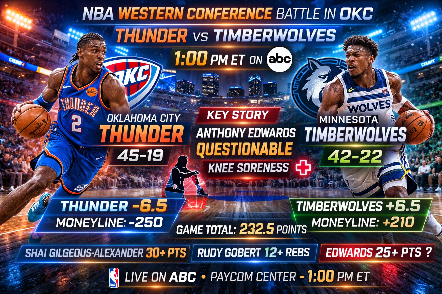 Hot take for the comments: If Edwards somehow plays through the knee soreness, does this become an instant Thunder fade spot with the public already overloaded on OKC? Drop your contrarian takes below.